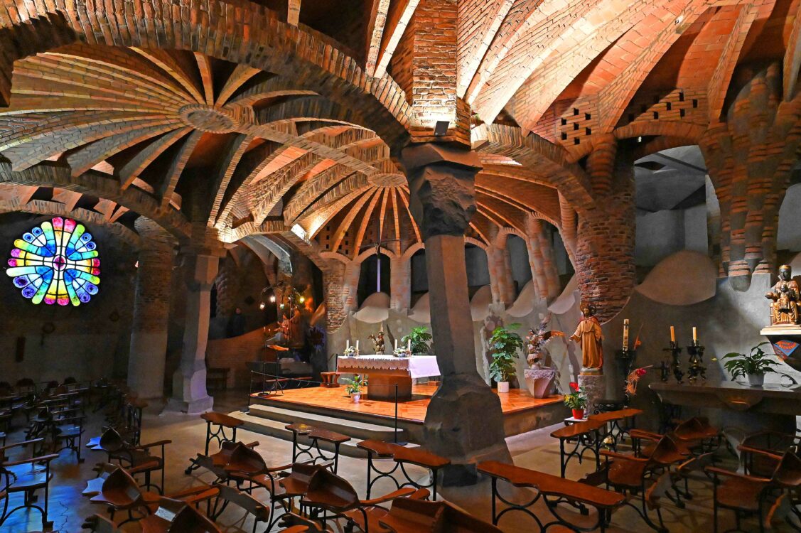 Espagne. Catalogne. Barcelone. La Colonia Guell fut construite dans un style moiderniste par l’architecte catalan Antoni Gaudi en 1890 pour l’industriel Eusebi Guell // Spain. Catalonia. Barcelona. Colonia Guell has been built in a modernist style in 1890 by catalan architect Antoni Gaudi for Eusebi Guell, a textile manufacturer.