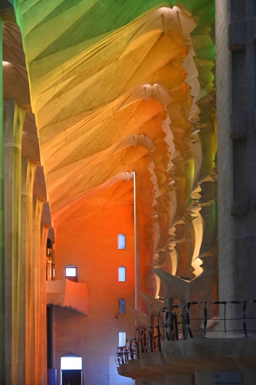 Entrer dans le temple de la Sagrada Familia procure toujours un choc émotionnel. La plus haute église du monde toise la ville de Barcelone de ses 172 m de hauteur. Sa flèche principale vient enfin d’être coiffée de sa croix géante dessinée, dès 1890, par Antoni Gaudi. L’église ne sera pas terminée pour le centenaire de sa mort, mais il était important pour tous les admirateurs de l’architecte d’achever cette étape de la construction. Passé la façade Est décorée de statues représentant la Nativité, le visiteur est littéralement happé par l’immensité de la nef, la forêt de piliers qui s’élèvent vers le ciel, les jeux de lumière des vitraux. Le moindre détail a été pensé par Gaudi et respecter ses volontés posent encore bien des défis techniques aux architectes d’aujourd’hui.
