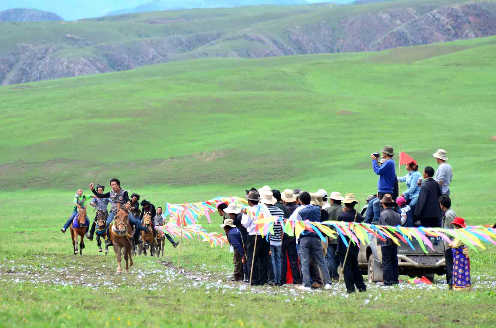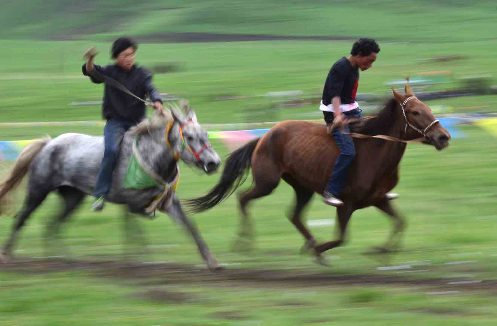 Chine. Tibet. Province de Gansu. Region de l’Amdo. Chaque annee, en juin, les villages des vallees se retrouvent lors des fetes de Lapste et s’affrontent lors de courses de chevaux // China. Tibet. Gansu province. Amdo region. Every year, in june, the villages of a each valley are gathering together for horse races.