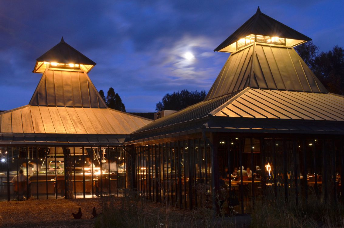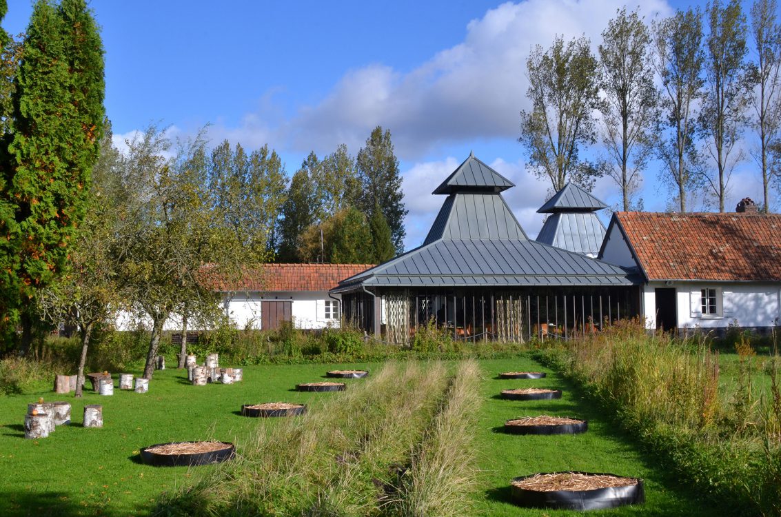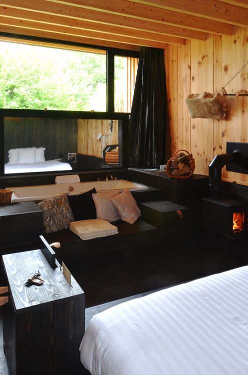 Là aussi, Alexandre Gauthier et Patrick Bouchain ont su créer un lieu hors du temps, suspendu entre marais oublié et jardin fantastique. Inspiré des huttes de chasse de la baie de Canche, les deux compères ont dissimulé huit chambres au fond de la propriété mise au naturel par la paysagiste Tiphaine Hameau. Plantes endémiques, fagots, hêtres, bouleaux et saules pleureurs se mêlent et s’entremêlent en un savant désordre, se reflètent dans la grande baie vitrée des chambres. Intérieur en bois brut, lit en contrebas, baignoire dissimulée dans une coffre banquette, poêle à bois, télévision dissimulée dans une toile de jute…tout a été conçu pour créer un rustique confortable, un nouvel antre propice à l’hibernation. Pour peu que vous décidiez de prendre le délicieux petit-déjeuner au lit, apporté en chambre dans un panier d’osier, voici un lieu où il fait bon paresser. Ultime et délicieuse transgression.