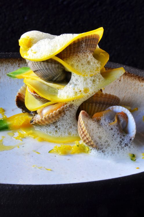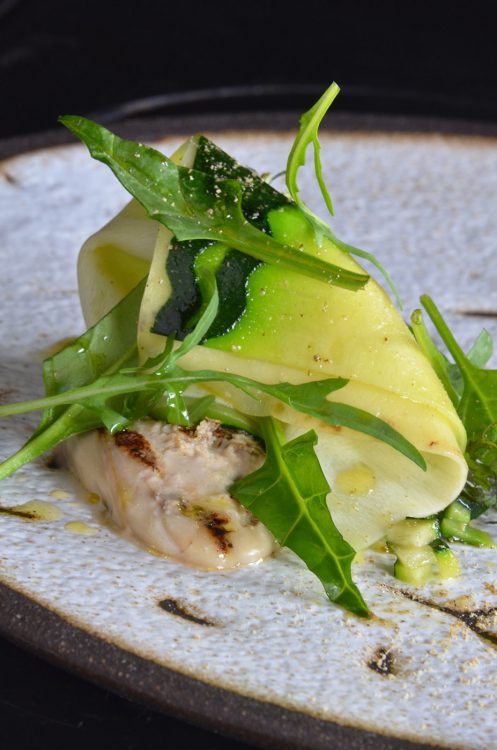 Alexandre Gauthier revendique une cuisine de terroir, résolument française mais libérée de ses contraintes et de ses aprioris. Face aux produits, il affiche une franchise parfois brutale. « Chaque produit a une vie et des ressources à tous les stades de sa vie. C’est vrai pour les fruits et les légumes mais également pour la viande. Ici, je sers la vachette à 3, voire 5 semaines. J’adore imaginer des recettes avec un même produit travaillé à des stades de maturité différents qui dévoilent alors des goûts et des saveurs insoupçonnés ». Son autre cheval de bataille, la cuisson : « Pour moi, on mange toujours trop cuit et c’est un désastre gustatif. Mais pas seulement. L’intégrité même du produit en est modifié ». Ce chantre de la cuisson courte le prouve avec un de ses plats signatures : le homard-genièvre. C’est une sensation étrange que d’attraper cette queue de homard à pleine main et de croquer dedans. Au début, le geste est timide, un fond de bonne éducation sans doute, et puis il y a les voisins, qui regardent. Ensuite, le geste s’affermit car le homard a ici une toute autre texture et les dents doivent se tailler un chemin dans les fibres longitudinales de ce muscle adapté aux rudes conditions de vie sous-marine. La timidité devient bestialité, le jus coule entre les doigts et sur les lèvres. C’est juste dur de réprimer le réflexe de s’essuyer les lèvres d’un revers du coude. Moment grandiose et délicieux où la transgression joue à plein et sublime toujours plus le produit. Avant et après, le chef a concocté quelques belles surprises plus classiques dans leur dégustation. Œufs de caille Algues séchées, Potimaron et Clémentine, Blanc de caille et Crevettes grises, Courge jaune et Coquillages, Huitre chaude au poivre blanc, Haricots beurres rôtis au beurre, Seiche sang de cochon, Vachette, Maïs sarriette, Cacao cerfeuil.