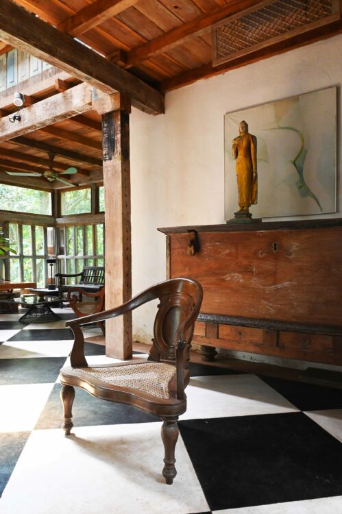 Né en 1919, Geoffrey Bawa, considéré comme l‘un des architectes asiatiques les plus influents de son temps et père du style «modernisme tropical», fait d’abord des études de droit. Ce n’est qu’en 1948, alors qu’il vient d’acheter une plantation dans la région de Bentota, qu’il se prend de passion pour l’architecture. Le domaine de Lunuganga, sur la côté ouest du Sri Lanka, est aujourd’hui considéré comme son manifeste.