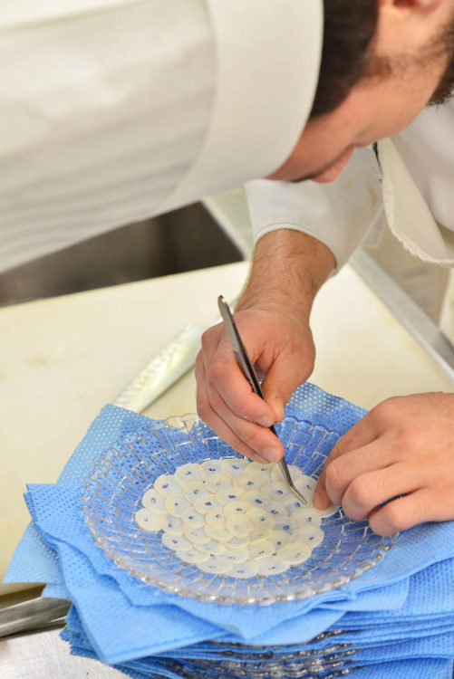 A Marseille, Gérald Passedat, héritier d’une lignée de chef accrochée depuis 1917 sur les rochers du quartier d’Endoume, a fait du « Petit Nice » la seule adresse trois étoiles Michelin de la ville en ne cuisinant que des produits frais tirés de la mer. Au menu, pas moins de 90 espèces de poissons, d’algues, de crustacés et de fruits de mer, tous péchés de manière durable et responsable par une poignée de pécheurs passionnés de leur métier qui, chaque matin, livrent le restaurant. Au choix galinette, chapon, girelle, sarran, mostelle, turbot…que le chef propose sans artifices si ce n’est un long et patient travail sur les saveurs, les découpes et les jus qui sentent bon les herbes de Provence. Gérald Passedat est également en charge de la restauration du MUCEM, à Marseille, et de la brasserie de l’hôtel Lutecia, à Paris.