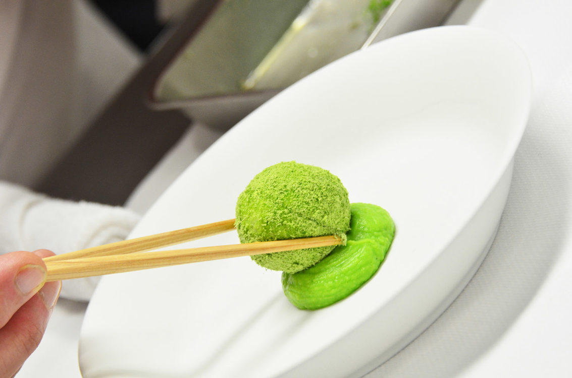Dans les cuisines de l’hôtel Mandarin Oriental, à Paris, voici Thierry Marx, ses éternelles baguettes à la main. Véritable prolongement naturel de son bras, elles vont et viennent à une vitesse hallucinante, attrapent, placent, déplacent, pointent, commandent. Son second est une Japonaise, comme bien d’autres membres de sa brigade. Un petit rituel de salutation ponctue les échanges, nul besoin de rappeler l’attachement de Thierry Marx à ce pays dont il maîtrise les arts martiaux et la cuisine traditionnelle kaiseki.
