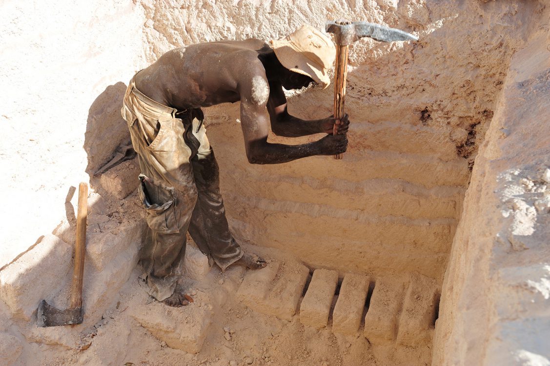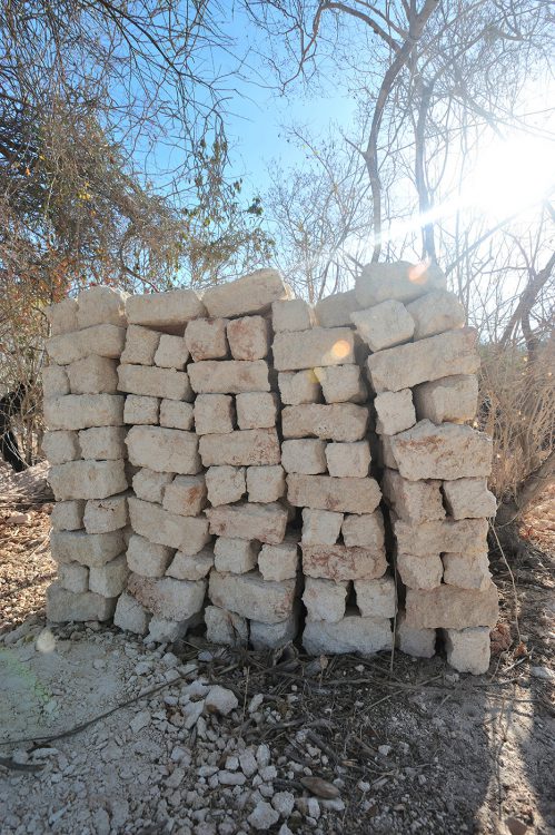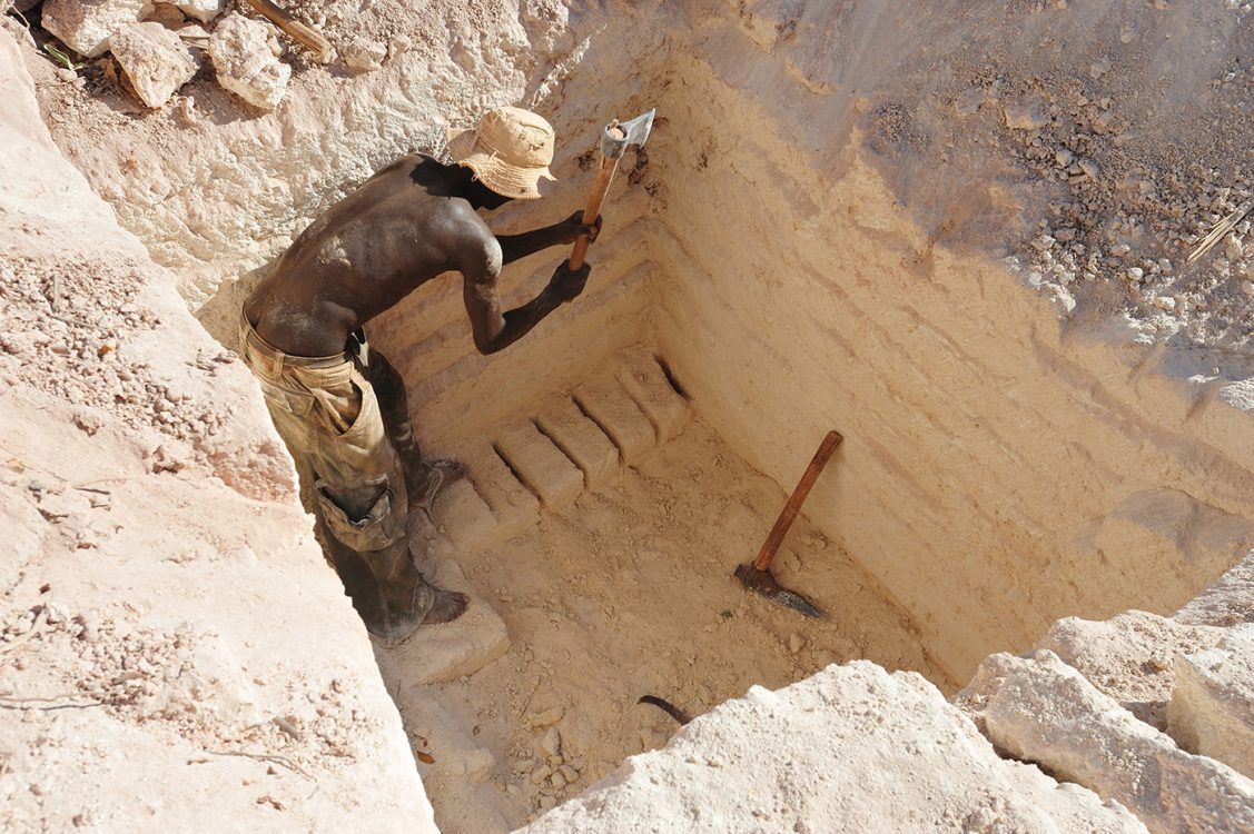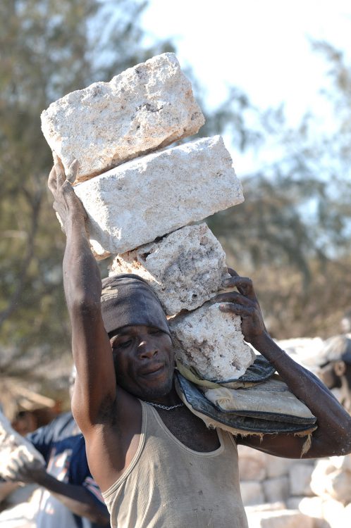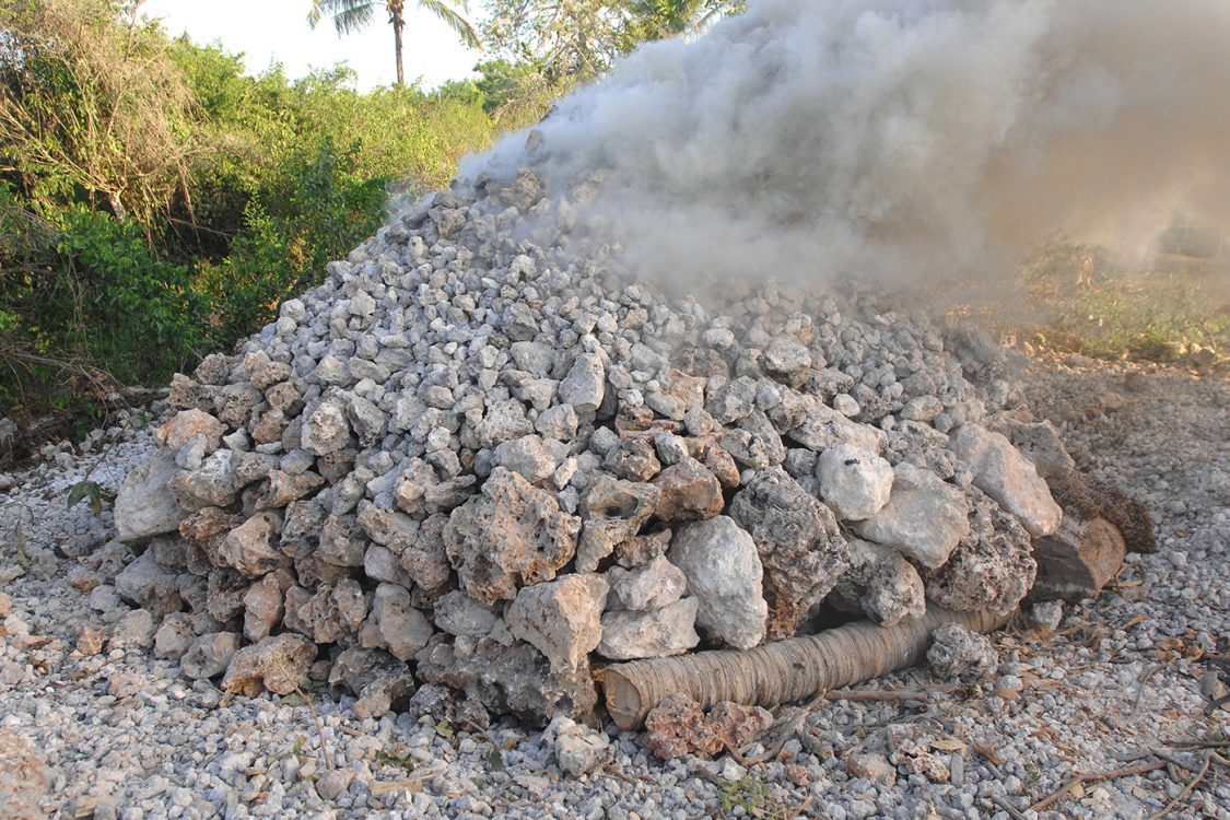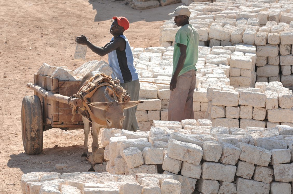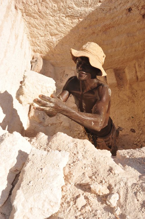 Au Kenya, sur l’île de Manda, située en face de Lamu, ces carrières se visitent. Le travail des tailleurs est harassant. Chacun creuse son propre trou et taille des blocs rectangulaires avec un pic, le tout sous le soleil et sans eau. Une fois taillés, ces blocs sont mis à durcir au soleil, rassemblés puis portés à dos d’homme ou d’âne vers la plage où ils seront chargés dans des dhows à destination des ports de la côte (Lamu, Mombasa, Zanzibar…).