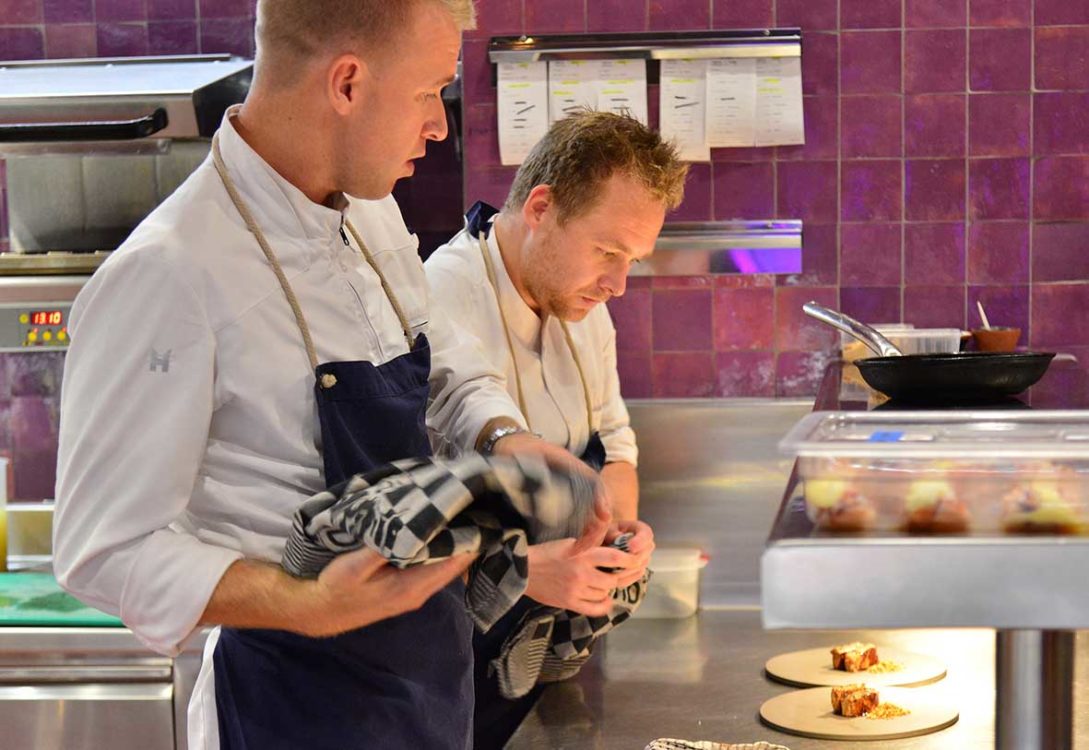 Tine Claeys et Marc Verstraete, Belges ayant fait fortune dans la bière, ont découvert en 2006 un des secrets le mieux gardé du département de l’Hérault, dans le sud de la France : le domaine de Castigno. Si les premières étapes ont été consacrées à la restructuration du vignoble, situé sur les contreforts de la Montagne Noire, afin de créer une gamme de vins biologiques « Château Castigno », Tine et Marc ont vite eu l’envie de créer un projet parallèle lié à l’oenotourisme : le renaissance du village voisin d’Assignan sur un mode « slow tourisme ». Tout séjour au « Village Castigno » se doit d’être un antidote à la vie moderne permettant aux visiteurs de renouer avec le plaisir du bien manger, du bien boire et du bien vivre, du partage entre amis. De multiples expériences y sont donc proposées : dégustation de vins bio dans le chai à l’architecture résolument contemporaine, détente au bord de la piscine, exploration des villages médiévaux du Haut Languedoc, balades à vélo, découverte des marchés locaux en scooter ou en 2CV. Sans oublier la partie gastronomique avec le restaurant « La Table ». Ici, pas de carte ni de menu. «Aller au restaurant sans savoir ce que l’on va manger fait partie de l’expérience que nous souhaitons offrir» expliquent les frères Pieter et Ruben De Maesschalk, tout juste auréolés de leur première étoile Michelin.